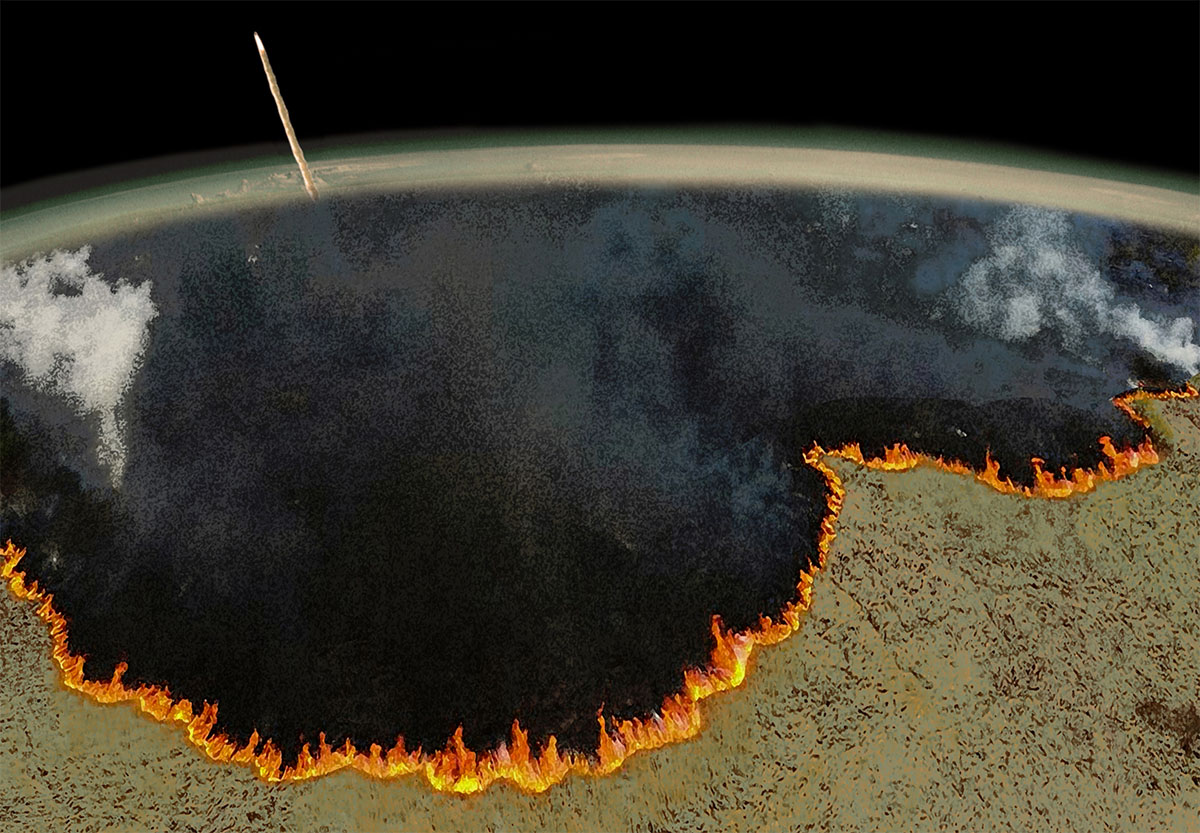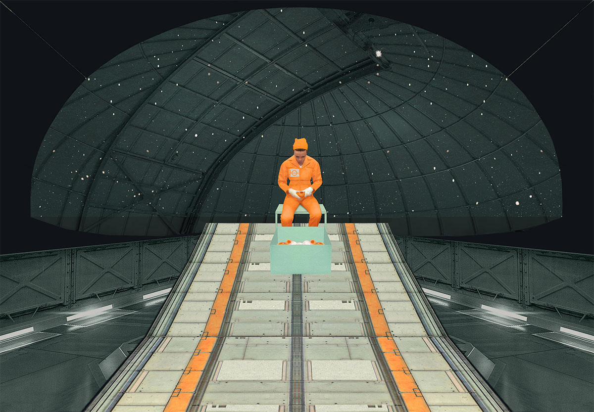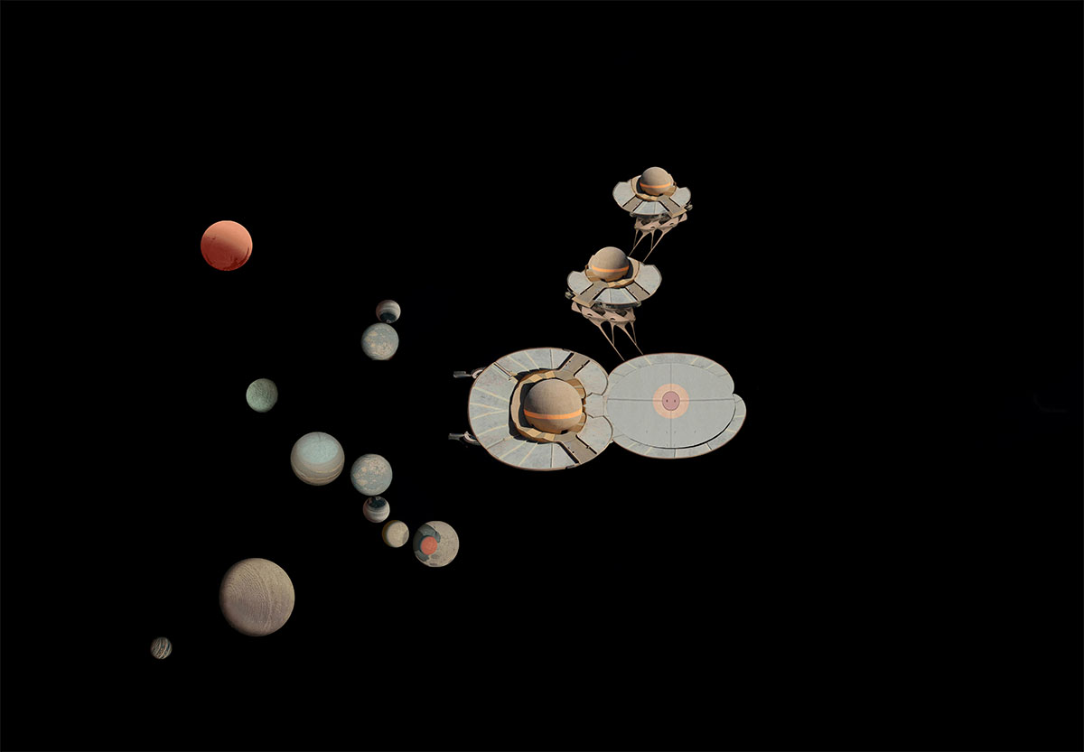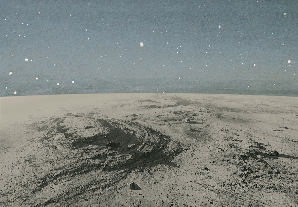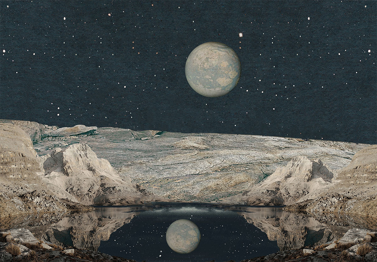 Collage-fábula a partir de mitos, filosofía y teorías cosmológicas.