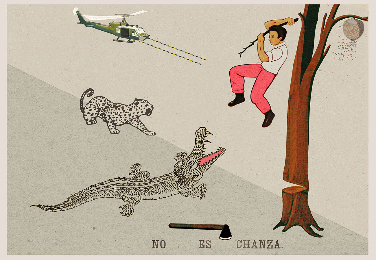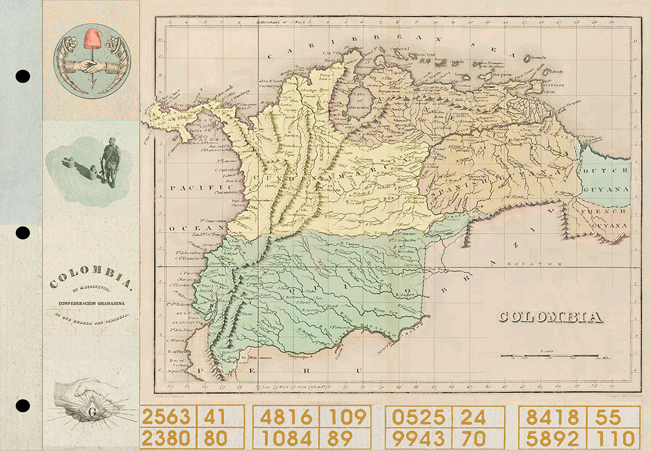Esta serie pone en contiguidad estratos de información proveniente de distintas fuentes y tiempos. La operación es simple y muy conocida. El desplazamiento y el choque por contiguidad de lo que proviene de distintos contextos buscando juegos de sentido. En este caso, fragmentos de frases, titulares de prensa, nombres de periódicos colombianos de distintas épocas, documentos históricos, pasquines y panfletos, volantes callejeros, mitos indígenas americanos e imágenes propias interactúan en estos nuevos contextos.
