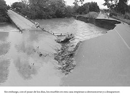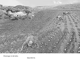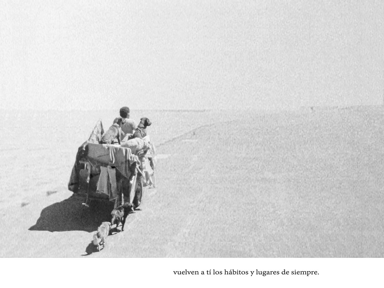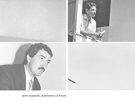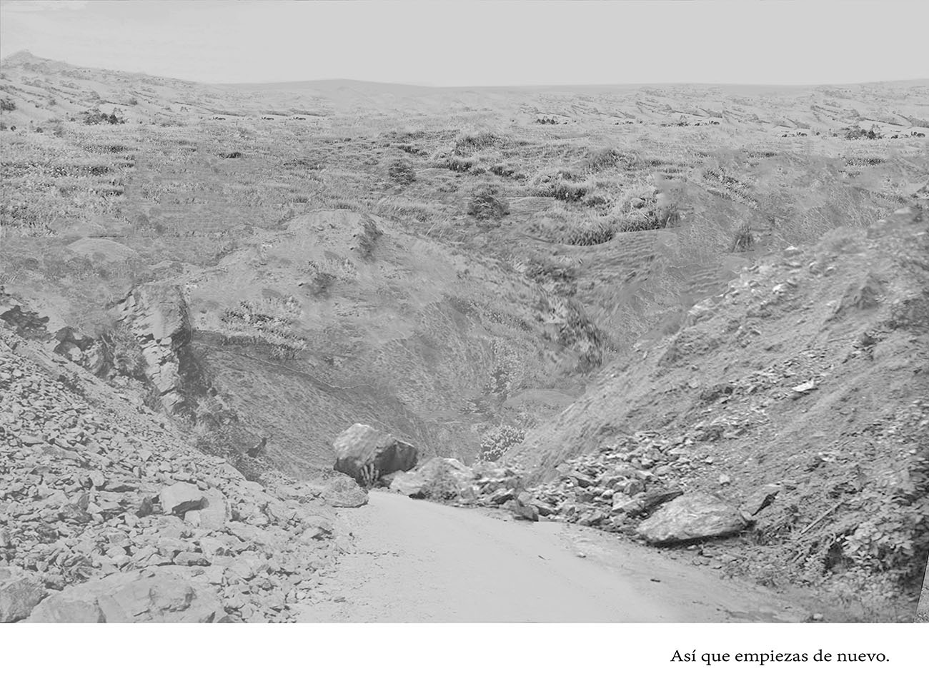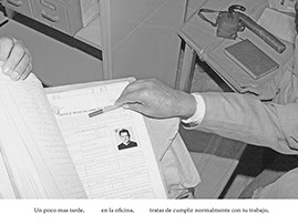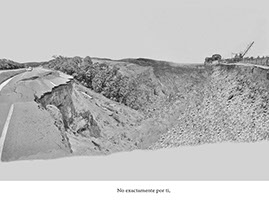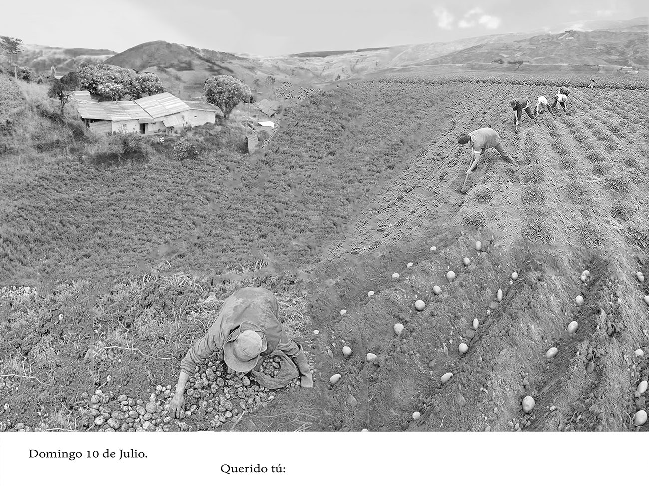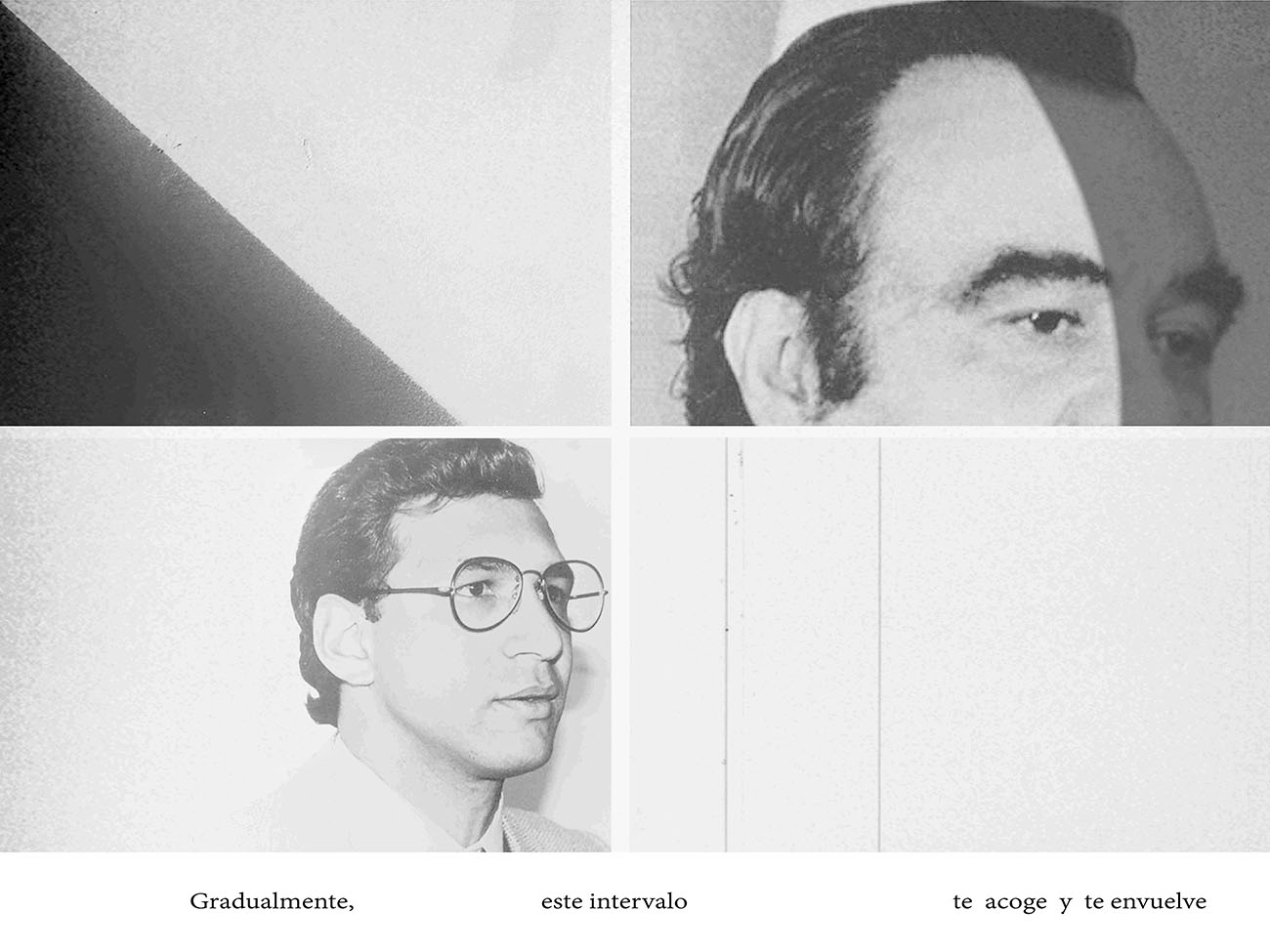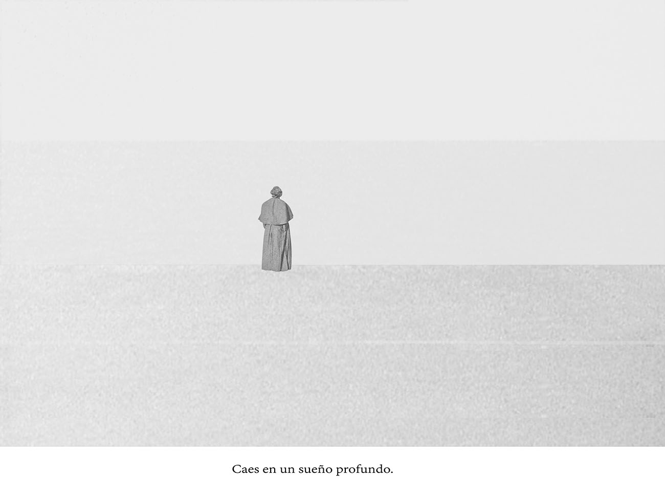 En cuanto a los textos que acompañan las imágenes se trata de un collage y adaptación de de textos de Jorge Luis Borges (His end and his beginning y Un teólogo en la muerte) y de Adrien Heathfield (End time now). Algunas imágenes del ensayo visual son mías y otras  son collages creados a partir de fotografías de prensa y de revistas colombianas. (Semana, El país, El tiempo y El Espectador). El texto en su primera parte tiene connotaciones metafísicas bastante tradicionales dirigiéndose a un otro ausente, es decir, a aquellos que ya no están con nosotros, a los que redime compasivamente en la antigua visión de una vida después de la muerte. Luego el texto duda su trayectoria y corrige el rumbo hacia la segunda parte que toma una forma epistolar dirigida a la figura de un otro, que vive en este tiempo y en el presente, es decir a los vivos. Así que creo que el texto oscila entre la elegía propia de invocar y lamentar a los que perdimos, y al mismo tiempo hacia el deseo de invocación de una esperanza hacia lo que aún no se manifiesta. Esta voz en off, tal como en la convención cinematográfica, es una voz sin cuerpo, una conciencia flotante que imagina situaciones y propone sus visiones al lector dirigiéndose de alguna manera a aquellos que representan las imágenes. Solo que esta voz en off solo tiene lugar en la mente del lector.
