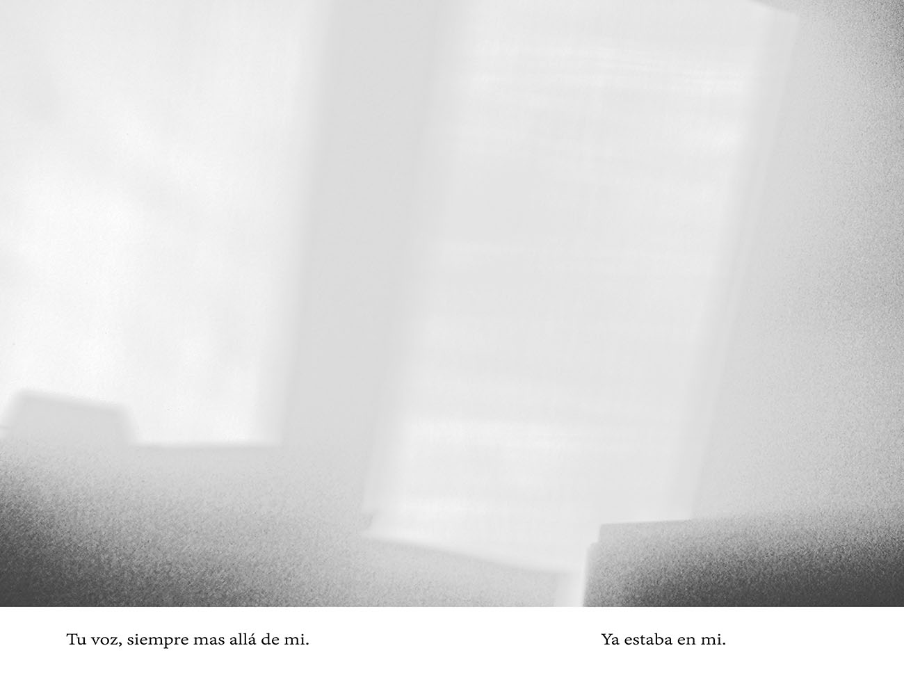 El ensayo visual Voz en off es motivado por la necesidad de realizar un duelo,  postergado por muchos años,  que obedece a un intento de redención y cierre interior en el presente de una serie de vivencias colectivas que afectaron a mi generación. Una obra en cierta forma siempre es un rito de cierre en relación a alguna vivencia o experiencia. Por momentos creo que ésta obra tiene un cierto tono elegíaco. Es decir que tiene el tono de una lamentación retrospectiva de aquello que sucedió y que se perdió en esta etapa y que busca darle una nueva forma a partir de un intento de redención de esas memorias. Y tras el intento de redención siempre esta su contraparte, es decir, la esperanza que está encriptada en todo hecho no asimilado y que busca el camino de alguna resolución. Pues allí siempre habrá un potencial de energía atrapada que al liberarse y hacerle justicia, siembra futuro en el presente. Es paradójico pero lo que aparece como apertura al porvenir muchas veces proviene de aquello que quedó congelado y entumecido en el pasado. Solo que requiere de una reactivación. Es lo que Walter Benjamin llama la potencia mesiánica de cambio y renovación que todo pasado guarda para el presente. Siempre y cuando sus energías sean liberadas.
